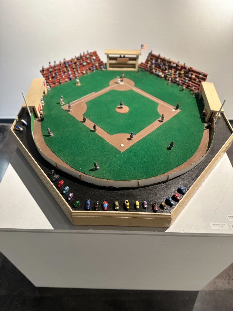 Baseball was alive and kicking. I, too, was a part of this great pastime, because I played back catcher. After the integration of the colored and white school, other sports were played by the colored folk, too. Games such as tennis, golf, and softball for the girls. All of the sports were well-organized. They had good training facilities. This was very different from the “sandlot” or “open field” that we once knew. In the past, everyone got a chance to play, but this changed with the times. Today’s sports are so competitive that many mediocre students never get to enjoy the baseball game that we knew as a child while growing up in the south. Not only did the game of baseball change, but so did our name. We changed from being called Negroes, to Colored people, to blacks and today, we are called African-Americans. We no longer have to sit at the back of the bus, we can sit where we want and enjoy the ride. We no longer attend one-room schoolhouses, taught by one teacher, but schools that are filled with teachers of all subject areas. Since I loved the sport of baseball, I combined my love of baseball with my hobby of carving peach seeds into people and things. Although I began carving in 1968, my love of peach seed carving flourished in the late 1980’s and the early 1990’s. When I began to carve my baseball stadium, the first pieces that I carved were the pitcher, a catcher, and a batter. I later added the umpire, a first baseman, a second baseman, a short stop, and a third baseman. Then I saw the need to add first and third base umpires. Later on, I decided to add the opposing team members and a dugout. This was a tedious project, but it was well worth it, when the completed project was done. When the Toronto Blue Jays and the Atlanta Braves went to the World Series, I knew my job was not complete. I began to make my peach seed carvings look just like them. By now, I felt the need to add a press box, vendors, a security guard. This has been a tedious journey, but I have loved it all the way. I have done carvings of other things, but to me, this has been my greatest carving achievement. It took a while to bring to life, and I know for myself that there is always room for improvement. Although, I doubt that the stadium will ever be complete to me, I keep adding more details. This is a hobby that I truly enjoy. I hope that those who get to see my baseball stadium and the teams carved from peach seeds, will enjoy it as much as I have creating it.”