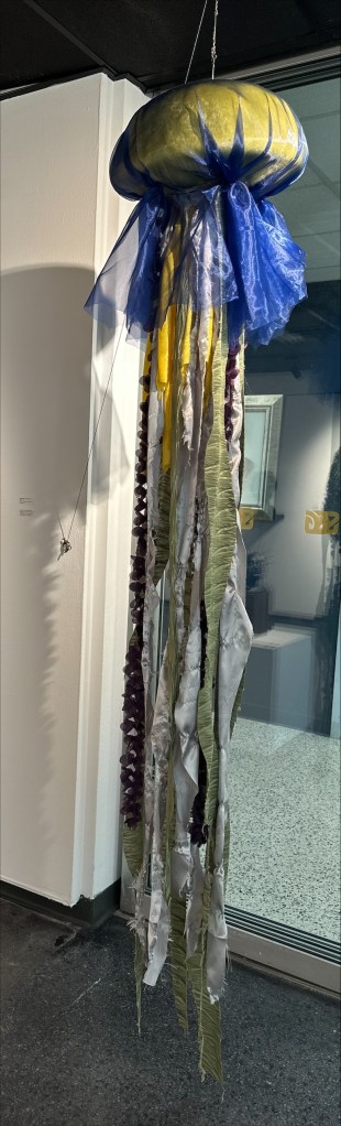 At the core of my artistic journey lies “Serenity Submerged,” an installation that embodies the harmony between art, emotions, and the profound impact of marine life. Drawing inspiration from the elegant dance of jellyfish, this immersive experience captures their grace and rhythm. The suspended fabric installations mirror the soothing motions of these aquatic creatures, inviting observers to engage in a serene dialogue with their inner selves.