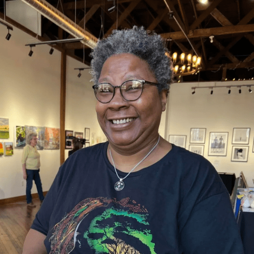 “I started in second grade and winning first contest really got me into art. At The Bertha Ellis Girls club on Chilwowie, I got more support and got to attend a summer class at ETSU in art. I have drawn most of my life and with recent retirement her time. I like different media, playing around with clay or repurposing materials to make things. All my life is adjusting to being the only black person in the room. I felt safe at Dunbar, but this was absent in the rest of my education at the local schools. Some of those feelings come out in my paintings to express my connection to my history, my Blackness, and Africa. I want to find my voice in my art.”