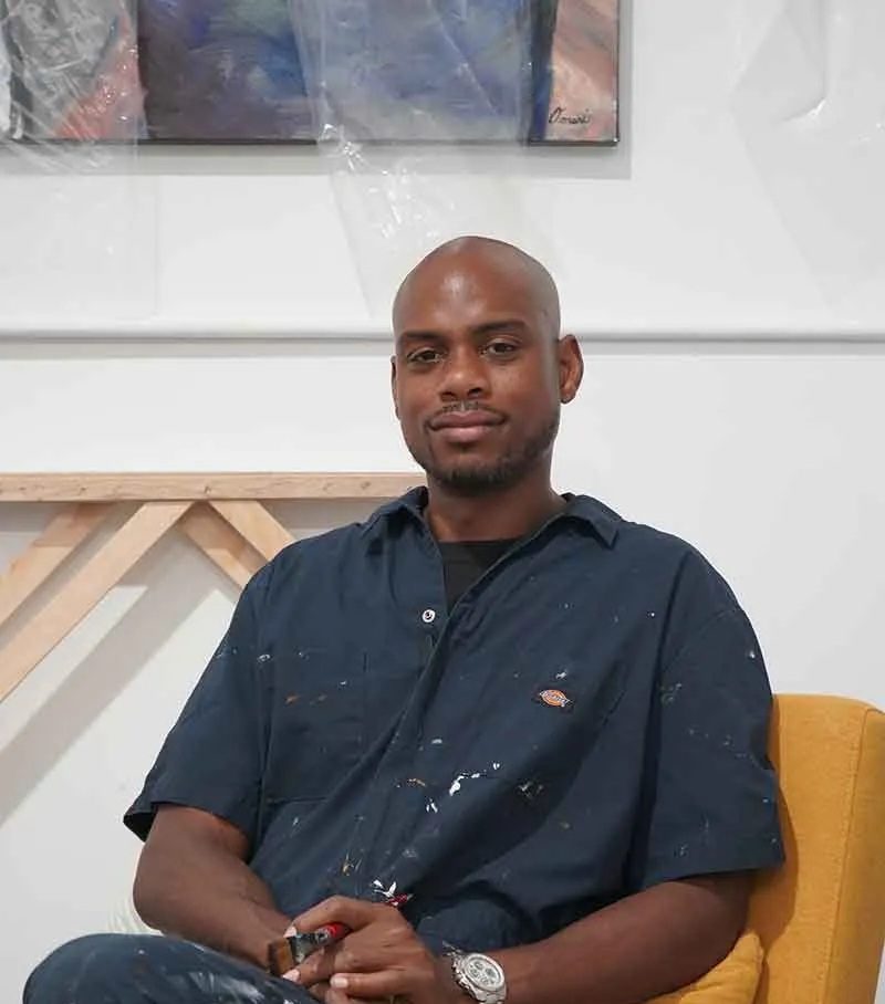Omari Booker, visual artist based in Nashville, and Los Angeles, CA, began his journey as an artist his senior year of high school at Montgomery Bell Academy. While attending Belmont University, Omari studied Mathematics and other more traditional curricula before he finally focused on studio art and graphic design. He later earned his B.S. in Graphic Design from Tennessee State University. Oil paintings are Omari’s predominant medium, but mixed media including charcoal, ink, and found objects are essential building blocks of his work and are used to create finished pieces. Large scale work has been a constant creative outlet for Omari, and murals are also a consistent part of his creative practice. Omari takes a process-oriented approach to his art, embracing it as a therapeutic modality through which he is able to express his passion for the freedom and independence that the creative process allows him to experience. His art is his personal therapy, and his desire is that those viewing it will have personal experiences of catharsis. The philosophy that undergirds Omari’s work is FREEDOM THROUGH ART and he aspires to create work that communicates to his audience their unique and intrinsic ability to be free. His artwork and murals are in private and public collections including The Tennessee State Museum, University of Central Florida Art Gallery and the Vanderbilt Black Cultural Center.